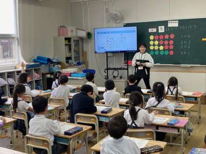 1年生も少しずつ学校での授業に慣れてきています。算数の授業では数字について学習中。(写真は先週の様子)