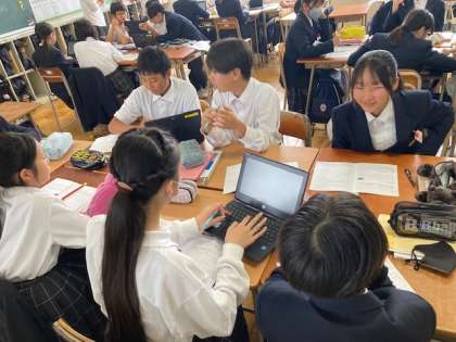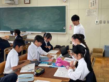 それぞれが好きな生物(植物・動物)を挙げ、それを班で出し合って、生活場所で「なかま分け」をしていました。わからないことは学習者端末で調べながら、班で楽しく協働学習を行っていました。