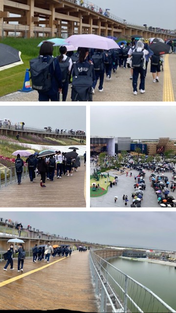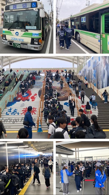 学校から森ノ宮駅まではバスで、森ノ宮駅から夢洲駅までは大阪メトロの専用列車で移動しました。