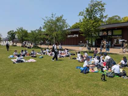 その後、「てんしば」に行き、芝生の上ででお弁当を広げてみんなで楽しんで食べました。