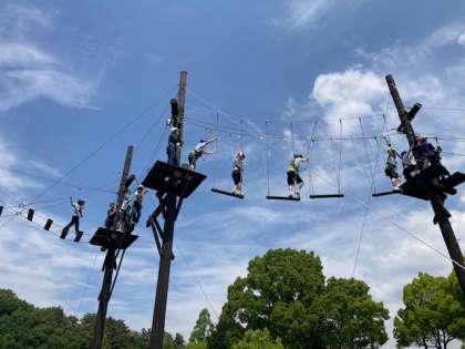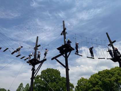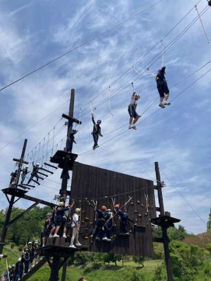 9年修学旅行1日目。彦根スカイアドベンチャー体験中です。
