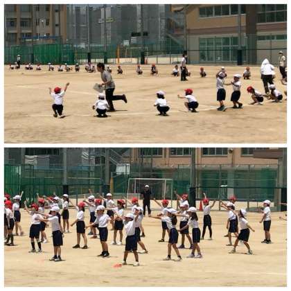 1年生〜5年生は、運動会に向け学年ごとに連日、団体競技・演技の練習に取り組んでいます=写真。