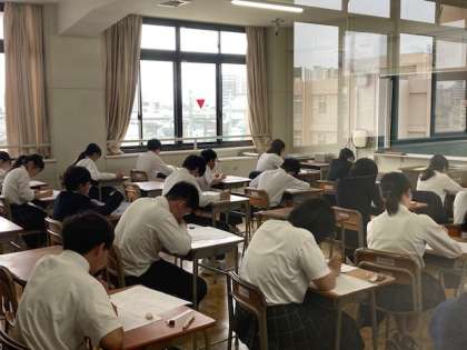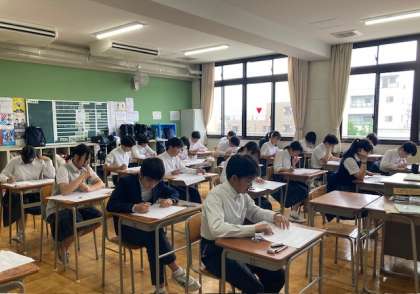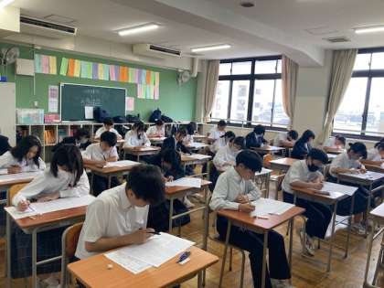 5月21日水曜日、後期課程では中間テストが行われています。7年生にとっては初めての中間テストということで、少し緊張した面持ちの7年生たち。どの学年も一生懸命テストに取り組んでいました。