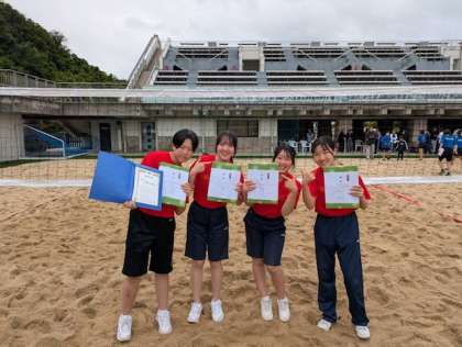 女子バレーボール部は25日日曜日、岬ライオンズクラブカップビーチバレーボール大会に出場し、優勝しました!三連覇達成です!
