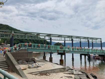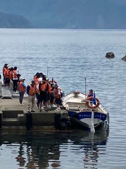 浜辺で説明と注意を受けて、いざ、カッターに乗り込みます!