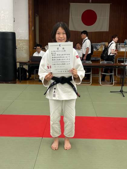 6月7日(土)、柔道の春季総体において個人戦が行われました。女子52kg級に出場の本校柔道部副キャプテンが第3位となりました。この52kgはエントリー者数も多く厳しい試合もありましたが、よく勝ち取ったと思います。この3位があったからこそ、団体の3位につながったような気がしています。