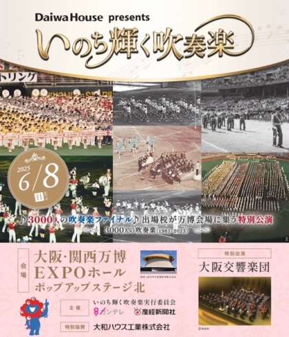 4月から本校で4回の合同練習を経て6月8日(日)、夢洲万博EXPOホールで行われた、DAIWA HOUSE Presents『いのち輝く吹奏楽』に大阪市立中学校合同バンドとして参加しました。