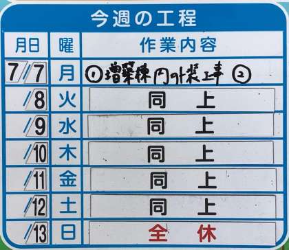 今週(7月7日〜13日)の工事予定