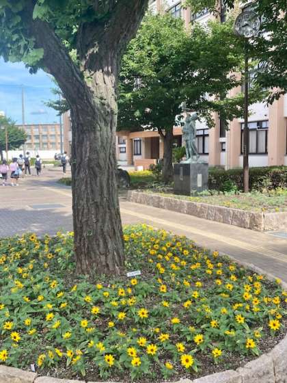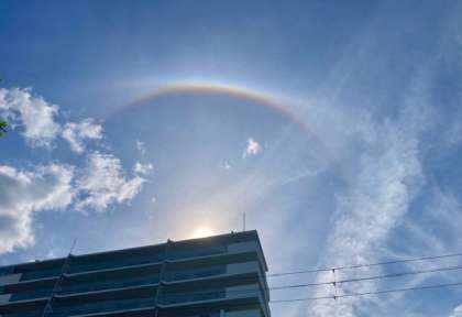 太陽のまわりに虹色の輪! 公開日 2025/07/11 更新日 2025/07/11 お知らせ 7月11日(金)、今朝、登校時に正門から空を見上げると、太陽のまわりに光の虹の輪「ハロ(日暈)」が出ていました。上空の薄い雲に含まれる氷の粒によって太陽光が屈折することで見られるそうです。 生野未来学園の児童生徒は今日も元気に登校しています。ミニヒマワリも満開で子どもたちを迎えてくれています! いいね(0)