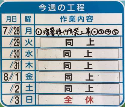 今週(7月28日〜8月3日)の工事予定 公開日 2025/07/28 更新日 2025/07/28 お知らせ 本校における今週(7月28日〜8月3日)の工事予定は「工事のお知らせ」=写真=のとおりです。 いいね(0)