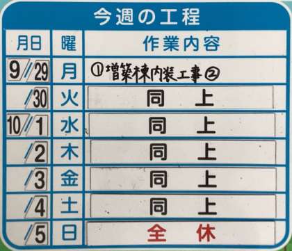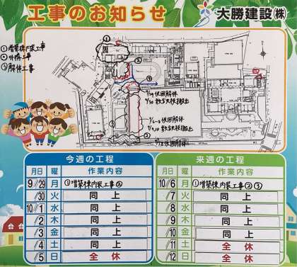 今週(9月29日〜10月5日)の工事予定 公開日 2025/09/29 更新日 2025/09/29 お知らせ 本校における今週(9月29日〜10月5日)の工事の予定は「工事のお知らせ」=写真=のとおりです。 いいね(0)
