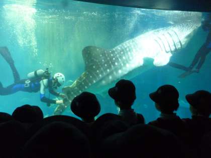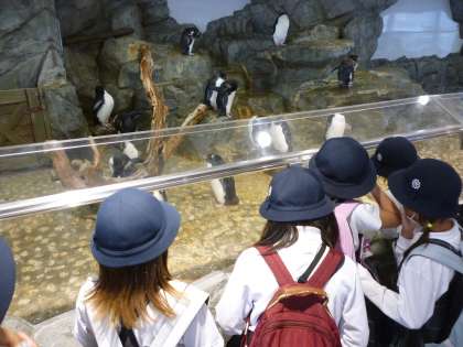 大きな水槽の中をゆったりと泳ぐジンベイザメを見て、「すごい!」「大きい!」と歓声があがりました。クラゲのコーナーでは、光の中をふわふわと漂う姿にうっとり。ペンギンが泳ぐようすや、アザラシが気持ちよさそうに寝ている姿にも、子どもたちは夢中でした。
