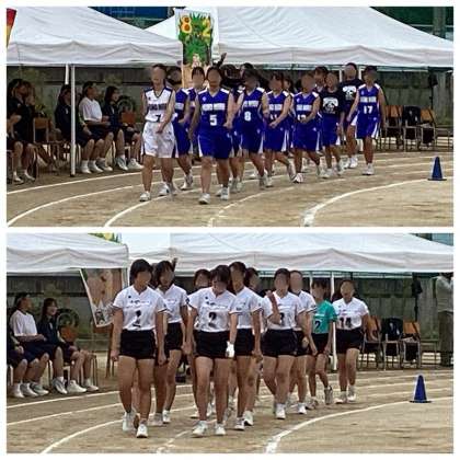 女子バスケットボール部、バレーボール部が行進したあと、陸上部が部活動行進のトリを務めました。