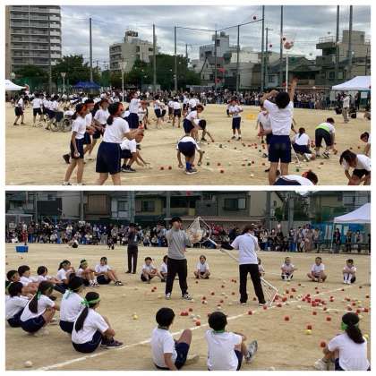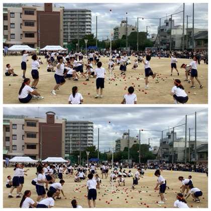 体育大会 6年学年競技玉入れ 公開日 2025/10/29 更新日 2025/10/29 お知らせ 3クラス一斉に競技開始。高い位置にある自チームのかごに向かって玉を投げ、入った玉の数を競いました。 いいね(0)