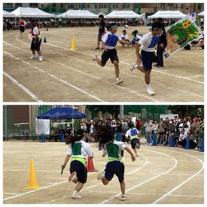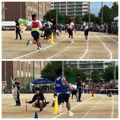 8年生も全員参加のクラス対抗リレーに全力で取り組みました。