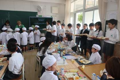 交流給食 公開日 2025/10/30 更新日 2025/10/30 お知らせ 先日、1年生と5年生、2年生と3年生と4年生で交流給食をしました。この日の給食は、ポークカレーライス、ほうれんそうのソテー、黄桃(缶)でみんなたくさん食べていました。特に、5年生の大盛りに1年生もびっくりしていました。 給食終了後、各教室で給食委員会の児童が中心となり、3択クイズや王様じゃんけんなどのゲームをして大盛り上がりでした。 いいね(0)