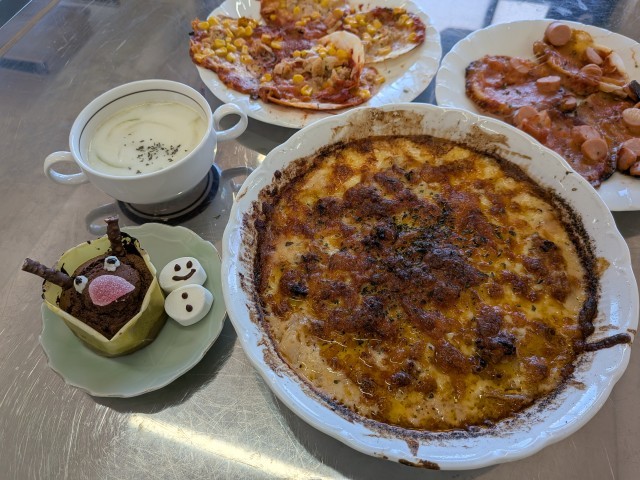 自分たちで調べたレシピを見ながら、こんなに入れるのか、足りるかな、これでいいのかな、と不安そうに調理をしていましたが、完成した料理はお店で出せるくらいおいしかったです。お腹いっぱい食べることができましたね。