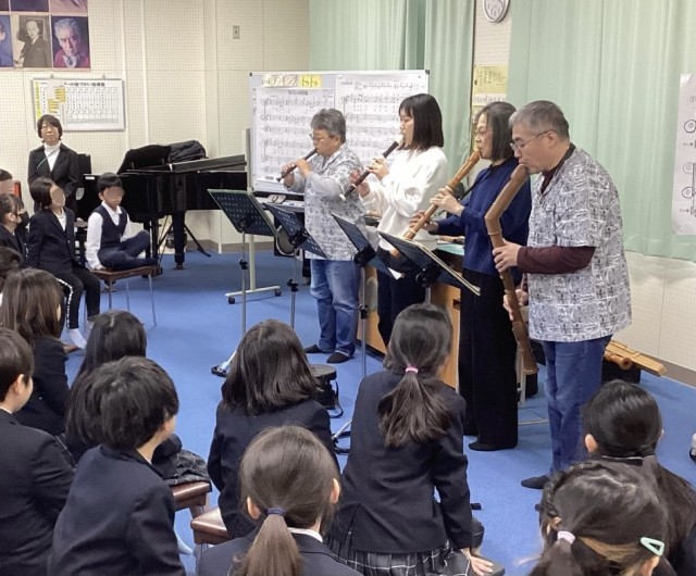 3年生が西音楽室でリコーダーの出前授業を受けました。