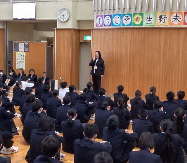続いて学園長先生から次のようなお話がありました。「あす2月3日は節分です。節分は、その字のごとく季節を分けるという意味であり、その翌日2月4日は暦の上で春が始まる立春ですね。節分では“鬼は外、福は内“と唱えますが、鬼は君たちの心の中にもいます。なまけ心や弱さ、怒り、責任転嫁などです。そうした心の中の鬼は誰にでもいます。気づいて少しずつ自分の中から追い出していきましょう」・「9年生は今月、私立高校の入試があります。不安や緊張も、もしかしたら鬼のように感じるかもしれません。でもその鬼は皆さんが本気で次の道に進もうとしている証拠です。自分を信じて集中力を高めて取り組んでほしい。6年生から8年生は4月に進級した自分を想像し、なりたい自分に向け一歩ずつ成長していってほしい」