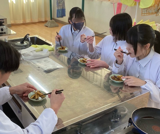 9年生が2月4日(水)、東館調理室で大学いもの調理実習をしました。