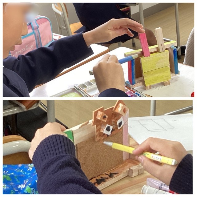 台付きの伝言板や写真立て、ミニチュア家具など思い思いの作品が次々に完成。それを教室に持ち帰り、色を塗って仕上げました。