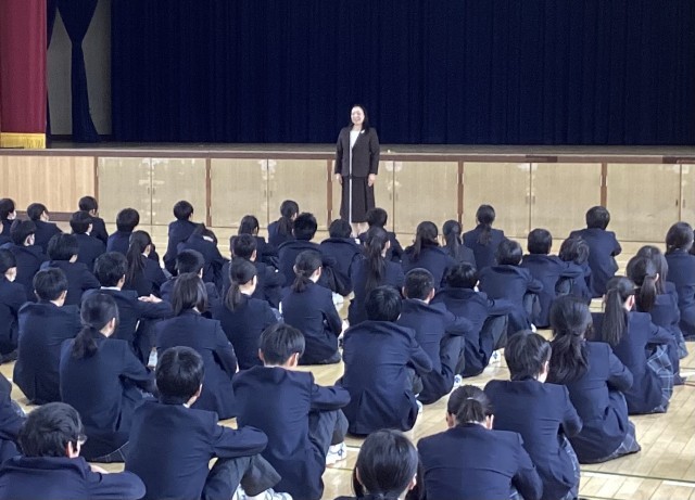 生徒指導の先生は、春休み中のルール順守や新学期に向けた身だしなみの準備などを呼びかけたほか、来月から自転車の交通違反の取り締まりが厳しくなることに触れ「16歳上の人が違反したら反則金が科せられます。たとえばスマホを見ながらの運転は12000円、信号無視は6000円です。16歳未満の君たちには違反した場合の反則金はありませんが、取り締まりが強化されるので十分に気をつけよう」と訴えました。