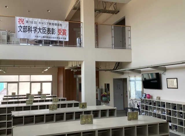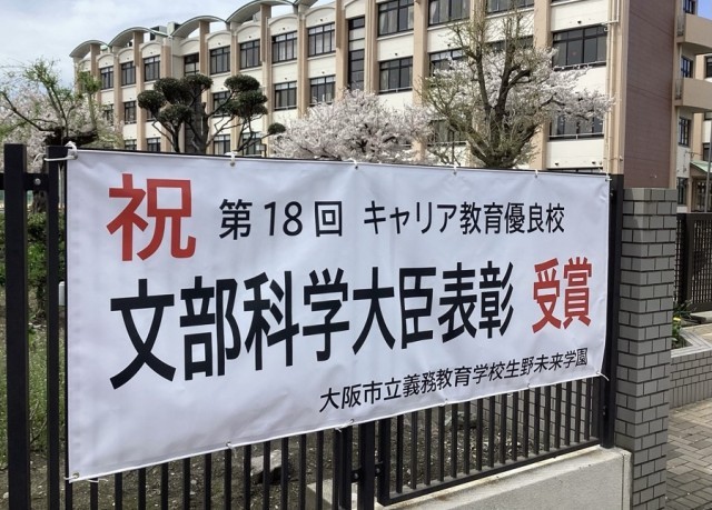 本校は、令和4年(2022)の開校以来、子どもたちの社会的・職業的自立のための力を9年間にわたって育むキャリア教育『IKUNO未来科』に力を入れ、地域の皆様のご協力のもと、職場体験や商店街での販売体験、働く人たちによる出前授業などさまざまな取り組みを続けています。このことが評価され、今年1月19日、キャリア教育優良校として文部科学大臣表彰を受けました。