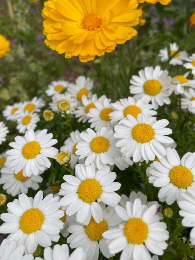 カンシロギクは、地中海沿岸原産のキク科植物。花の中心が黄色で花弁が白というシンプルな見た目ながら、密に咲くので周囲を明るく彩り、可憐(かれん)な印象も受けます。