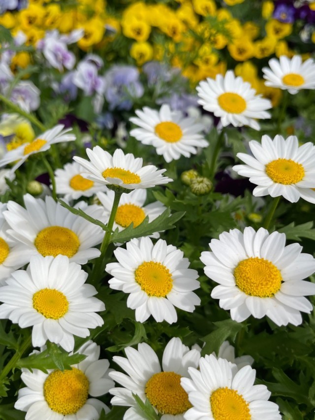 各花壇の縁取りのような形で植えられており、他のさまざまな花との対比も楽しめます。