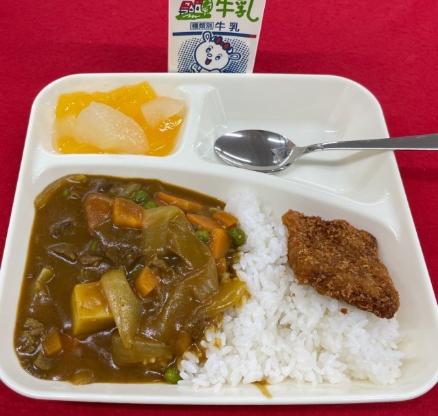 給食に「入学祝い」のカツカレー