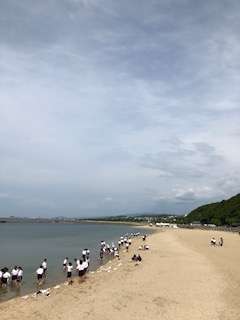 ビーチフラッグをして、楽しんでいるグループもいます。関空から飛び立つ飛行機も時々見られ、みんな楽しく活動していました。
