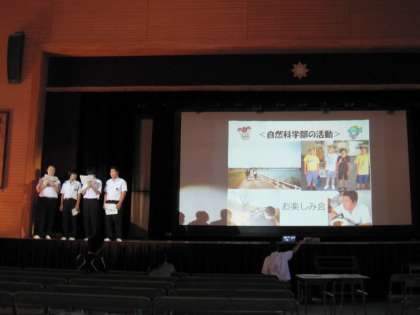今日は、国際クラブ・生徒会・図書部・自然科学部・英語部・美術部がしました。