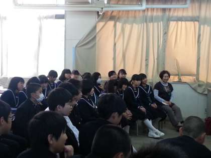 語り部さんを囲んで、クラスごとにお話を聴きます。