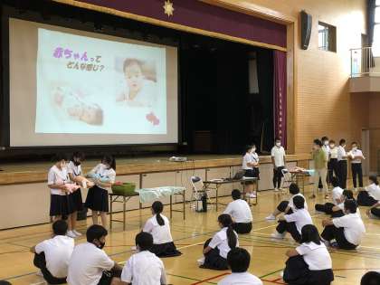 その後、保健委員の生徒たちが赤ちゃんの人形を抱っこして、