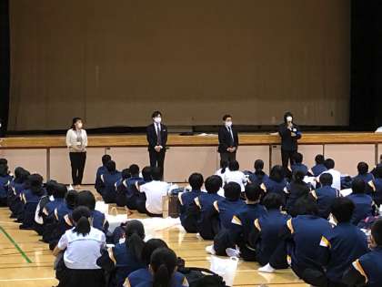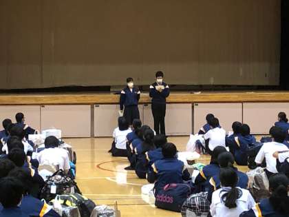 修学旅行実行委員から修学旅行の振り返りがありました。修学旅行実行委員のみんなは放課後残って最高の修学旅行にするために一生懸命頑張ってくれました。ありがとうございました。