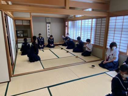 2F和室の入り口や室内の設えもすっかり秋の風情で、生徒たちの所作も美しく、日ごろの稽古の成果が出ていました。