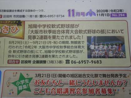 広報あさひ11月号で本校野球部の活躍が紹介されました!