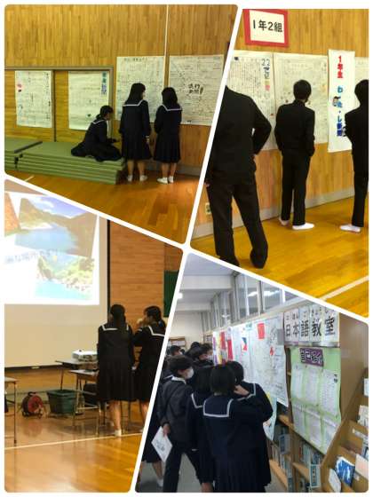 文化祭の展示をクラスごとに見学をしました。