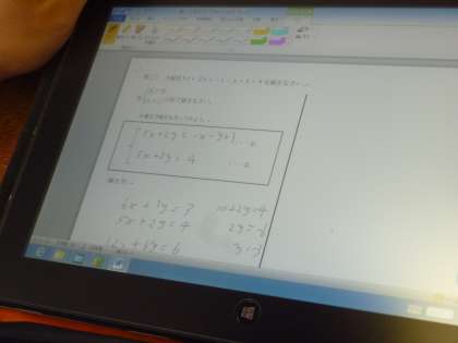 2年数学では、「連立方程式」の問題をタブレットを使用して解かせました。