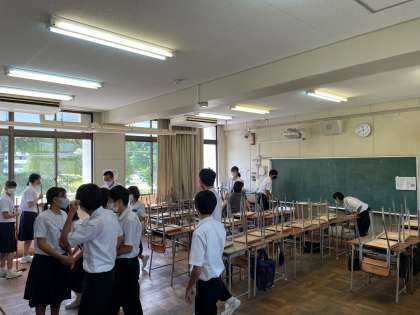 今日はみんなで大清掃を行いました。教室や廊下、階段など、隅々まで綺麗にして気持ちよく1学期を終えることができそうです。