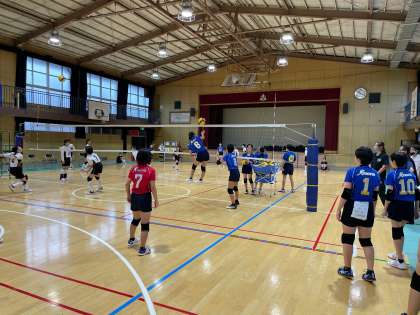 8月19日、鯰江中学校でバレーボール2ブロック夏季大会の予選リーグ1日目が行われました。