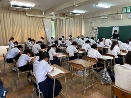 本日3.4限目の時間を活用して、1年生と2年生では英語と数学の確認テストが行われました。