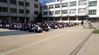 代表生徒のあいさつ、先生からの連絡後にバスへ移動し、いよいよ出発です。