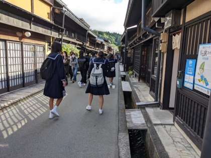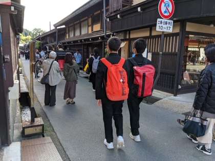 高山市内散策ではお土産を買ったり、班のみんなと相談しながらチェックポイントを回ったりしていました。