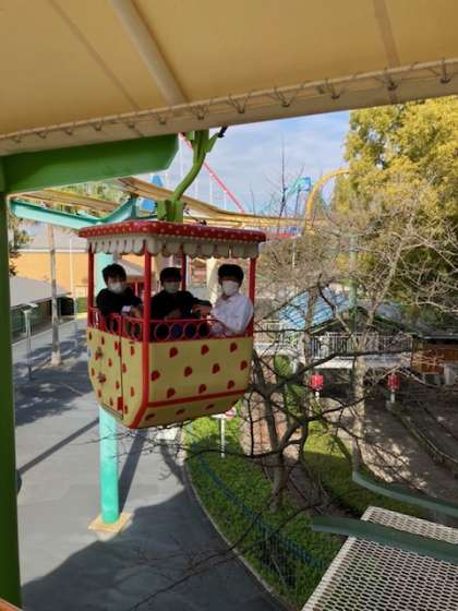 お昼ご飯も食べて、乗りたいアトラクションもだいたい乗れたようで満足そうな生徒たちでした。