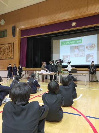 1年生を対象に、旭区命の教育プログラム「リアルケアベビー体験教室」が実施されました。