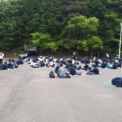 昼食の様子です。天気はくもっていますが、すごしやすい気温です。