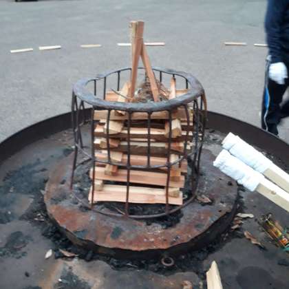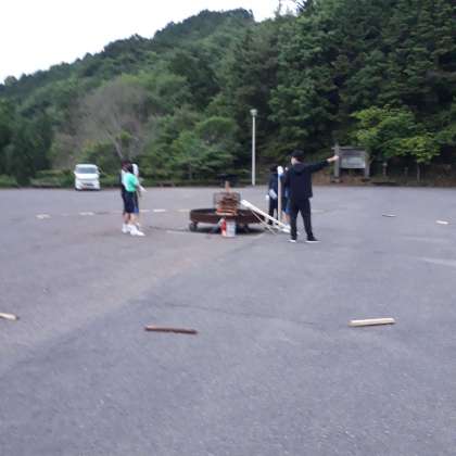 夕食を終え、キャンプファイヤーの準備中です。現在、順調にプログラムを進行できています。