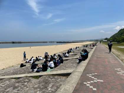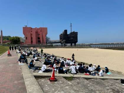 学級写真の後、海を見ながらみんなで昼食を食べました!