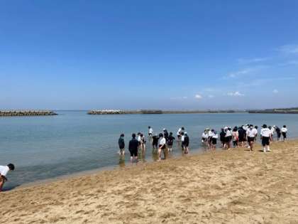 昼食後に、カッター訓練と磯遊びに分かれました。磯遊びは服を濡らさない程度に海に浸かったり、砂で遊んだりしてとても楽しそうでした!